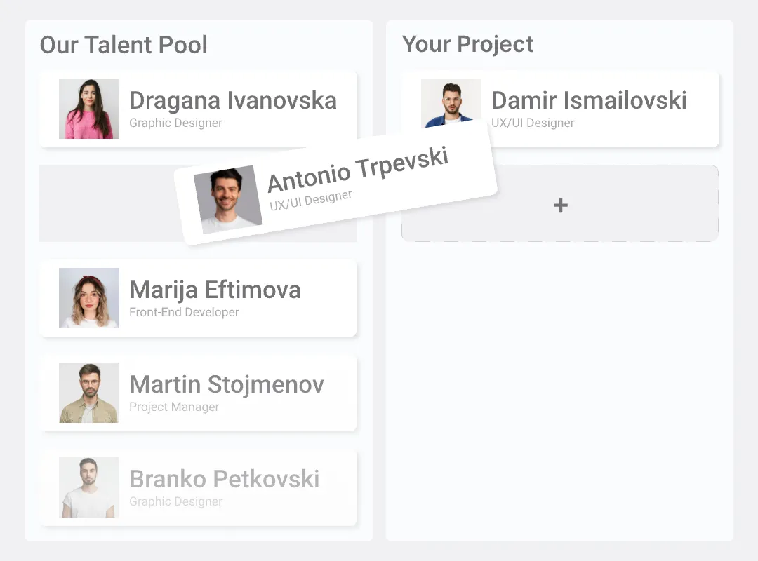 Top-Talent Matching. We connect you with pre-vetted developers and designers who fit your project needs, so you can scale without guesswork.